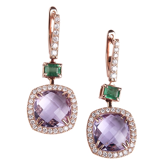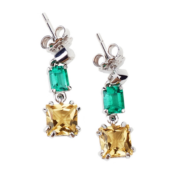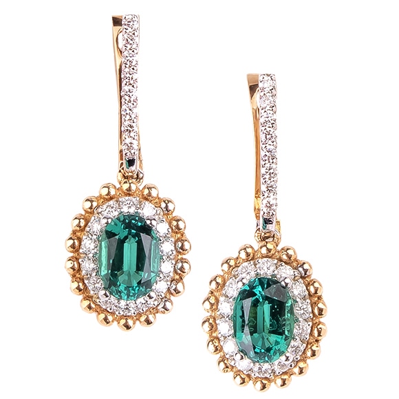 Kolczyki z żółtego złota ze szmaragdami i brylantami