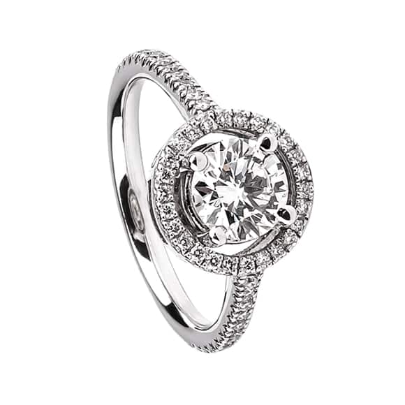 Pierścionek z białego złota z brylantem w fantazyjnej oprawie