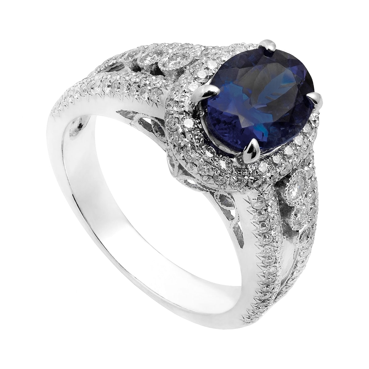 Pierścionek z białego złota z tanzanitem oraz brylantami