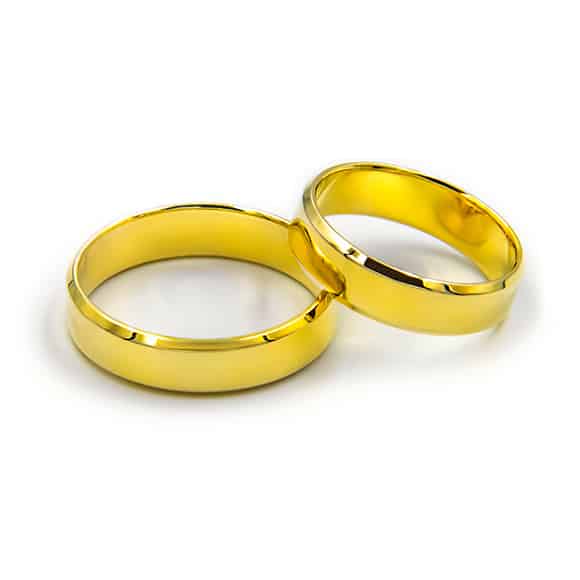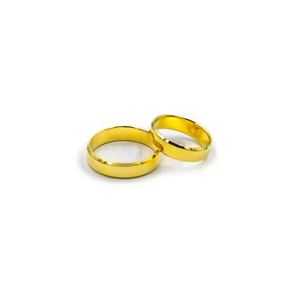 Klasyczne obrączki wykonane z żółtego złota o gładkiej, ponadczasowej formie. Wzbogacone o delikatne fazy boczne.